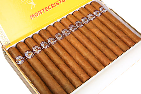 25 cigars in a paper-covered wooden box.